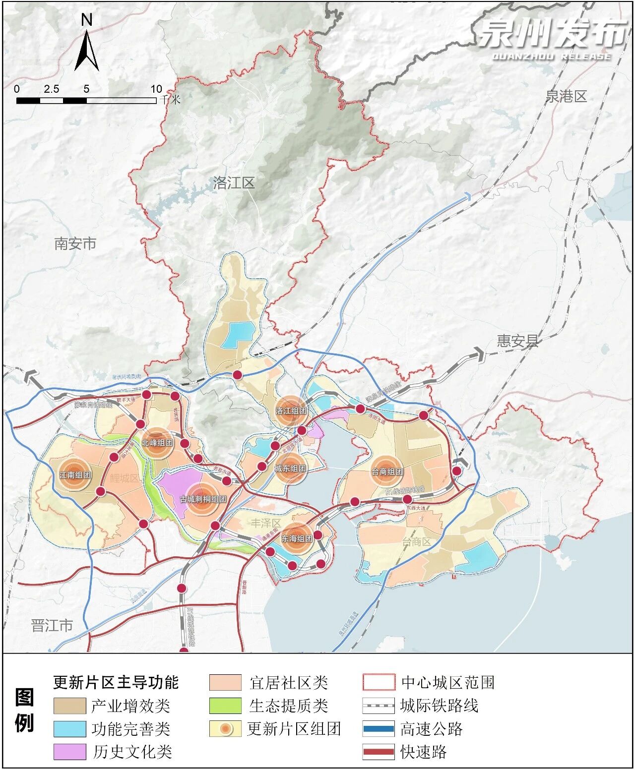 “七組團(tuán)”:涵蓋古城刺桐、江南、東海、城東、北峰、洛江、臺(tái)商等七大更新組團(tuán)。
